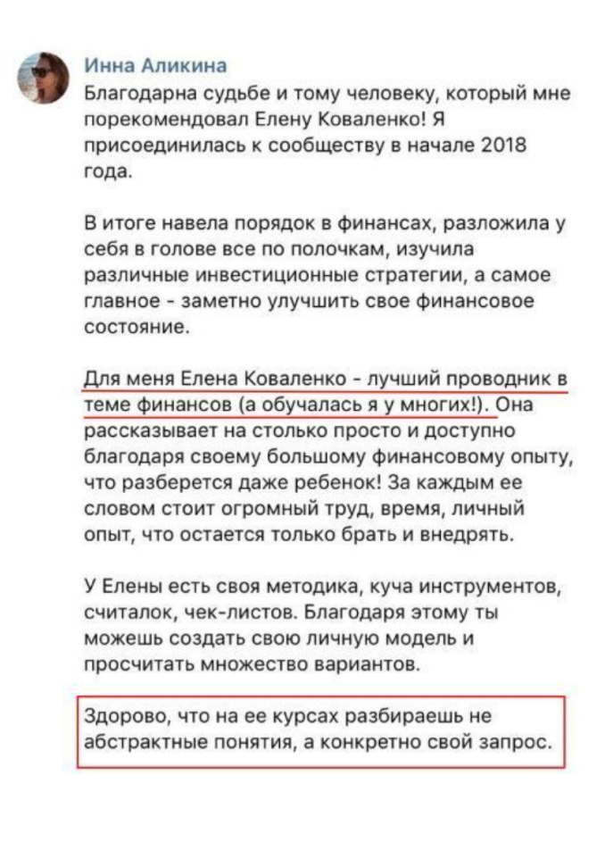 Отзыв о Елене Коваленко