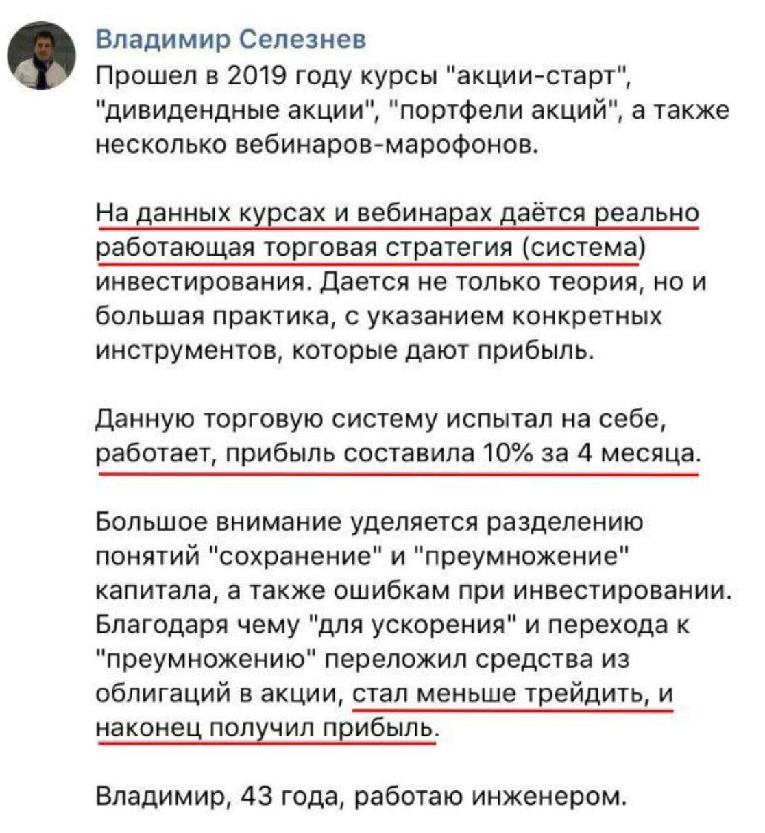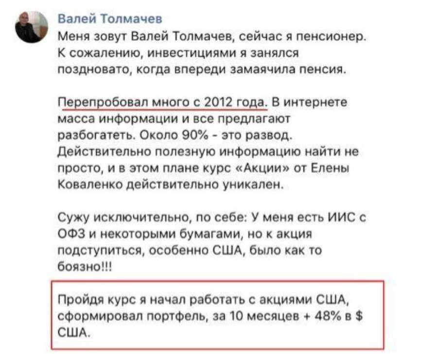 30% учеников приходят к нам уже изрядно "потрепанные" с убыточными портфелями, которые попытались собрать из "бесплатных советов", даже не понимая, почему они купили те или иные акции